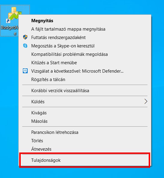 - A szoftver ikonjára kell jobb egérgombbal kattintani, ahol a megjelenő menüben a Tulajdonságokra kattintani.